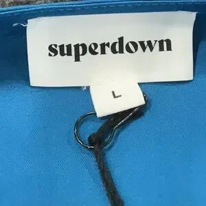 Superdown Amerie Pleated Halter Teal Blue Satin Top Women’s Large