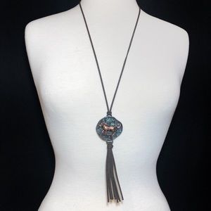 Statement unique chunky bold layered multi row light dark bright vintage classic stunning fun young trendy big large western Texas rodeo southwestern leather long fringe leather