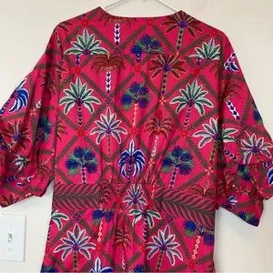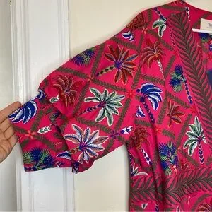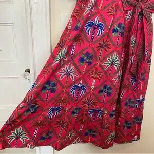 PRINTFRESH NEW Gabriela Midi Wrap Dress in Palm Tree Multi Pink Sz 1X