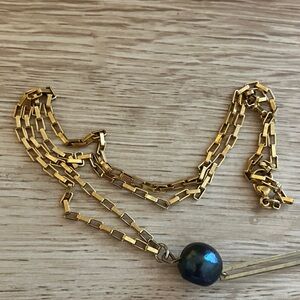 This elegant necklace features a stunning gold chain with a striking blue accent. Perfect for adding a touch of sophistication to any outfit.