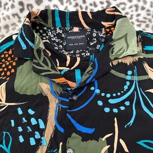 Denim & Flower Ricky Singh Abstract Tropical Shirt in Black Size Medium Men’s