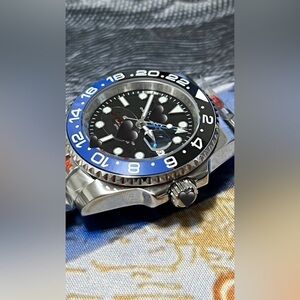 Men’s Luxury GMT Style Automatic Stainless Steel Watch “Batgirl” Colorway 41mm