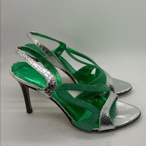 Boccaccio Glamorous Green/Silver Leather Stiletto Heels Shoes **Size 37/US 7**🌸🌸