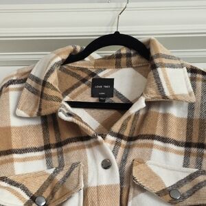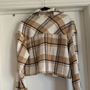 NWOT Large Love Tree Tan and White Plaid Cropped Jacket