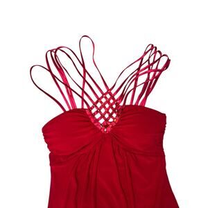 Y2K 90s Women’s Bedazzled Criss Cross Tank Top Red Size Small Vintage