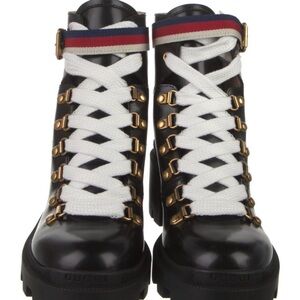 NWT Gucci Women's Black Combat Lace-Up Boots with Gold Accents US 5 EU 35