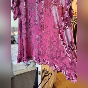 Worn once for a wedding! No flaws. The whole dress is slightly sheer, with some noticeably more sheer areas in the design; I wore a pink tank top & pink bike shorts underneath and it wasn't noticeable at all. Size xs but runs very oversized (I'm usually a size small or medium in FP clothing.) Pictures cannot do this dress justice and it is so much more strikingly beautiful in person. I will update and post measurements in the description as soon as I get a chance to! Please leave a comment with any questions :)