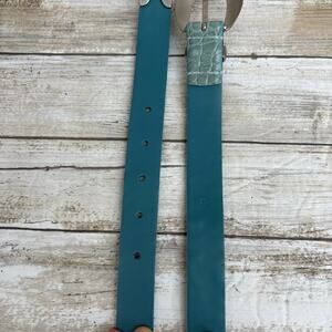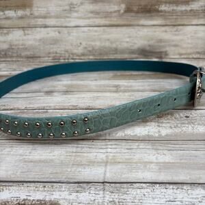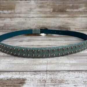 IZOD Leather Belt Sz XL Blue Studded Embossed Western Boho Cowgirl 36” Rodeo Y2K