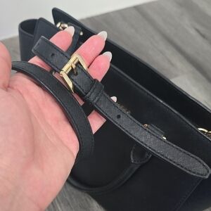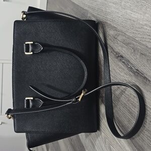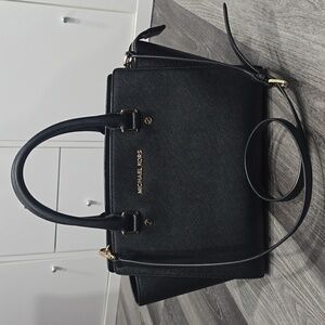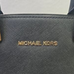 Michael Kors Selma Black Saffiano Leather Satchel Gold Hardware