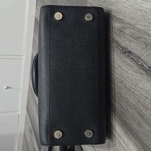 Michael Kors Selma satchel crafted from durable saffiano leather in classic black.