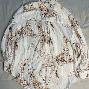 Jane + Delancey White Giraffe Print Button-Up Shirt Size Medium