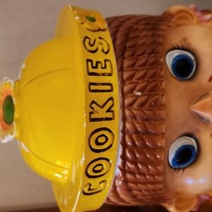 Vintage/Antique Yellow Porcelain Handpainted Girl Cookie Jar