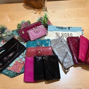 Vintage HOBO- a unique grey clutch with a strap and secure “lock” while still keeping its style. Chic metallic gray clutch with wristlet strap. Stylish and versatile for any event. Photo of multiples is an example of everything available.