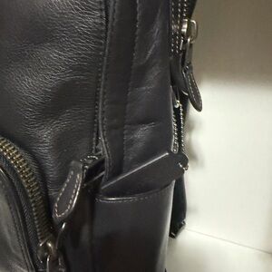 Sleek and stylish black leather backpack, perfect for everyday use. Durable and versatile, ideal for work or travel. Slight sign of wear around the edges. See the pic. Great condition. Authentic Coach. BONUS small Coach wallet