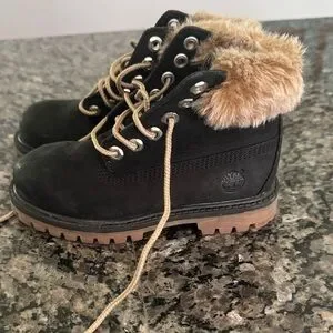 Timberland Black Boots with Tan Fur Trim EUC 10 toddler