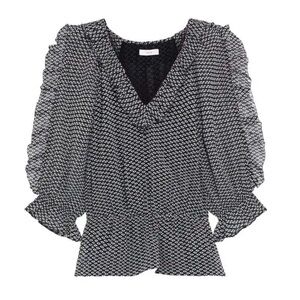 JOIE Zaida Ruffled Printed Silk-Chiffon Peplum Blouse Size Small