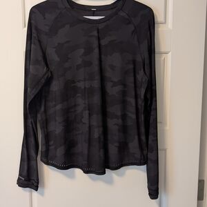 EUC. Run with the sun in this UV-protective top. A shaped back hem provides freedom of movement. Fabric is quick-drying with UV protection Features Designed for: Training Lycra®: Added Lycra® fibre for shape retention Thumbholes: Help keep your sleeves in place and hands warm Shine-bright : Reflective detail helps keep you on the radar in low light Fit: Classic fit