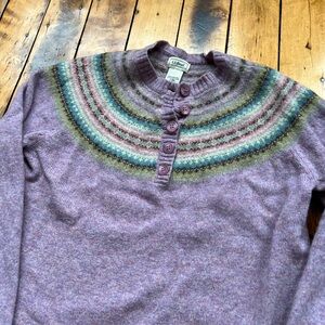 VTG LL Bean Women’s Large Lambswool Fair Isle Henley Sweater Kangaroo Pocket