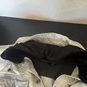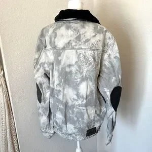 Akoo Light Gray Acid Washed and Paint Splatter Design Denim Jacket ~ Size XL