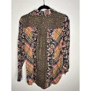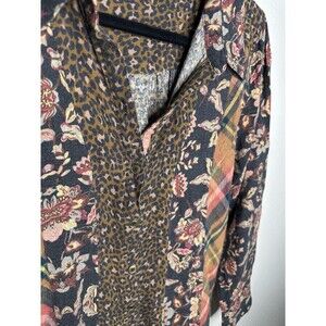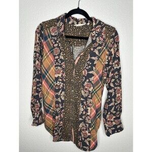 Soft Surroundings Shirt Womens Small Patchwork Floral Plaid Leopard Boho Top