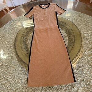 Reiss Rosie Short Sleeve Sweater Dress XS Camel/Black Striped Knit