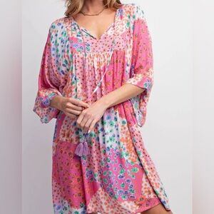 NWT Easel LA Multicolor Boho Floral Patchwork Dress/Tunic Top Oversized Small
