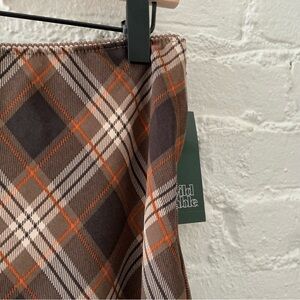 NWT Wild Fable Brown Plaid Print Midi Skirt Pull On Elastic Waist with side zip. Grunge Academia School Girl