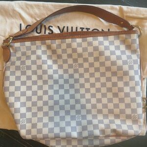 Louis Vuitton shoulder bag with Damier Azur pattern. In good condition, a few light stains in the bottom of the inside and light wearing on the corners.