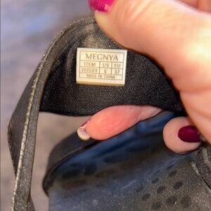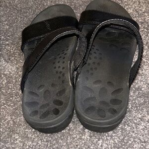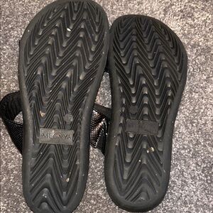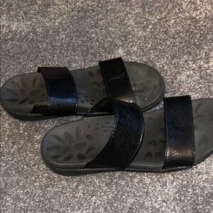 Women’s Size 6 - Megnya Orthopedic soles. Stylish black slides with textured straps. Ideal for casual outings.