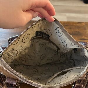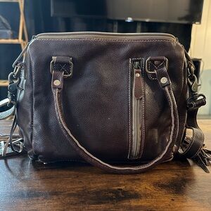 Stylish brown and cream handbag with fringe detailing. Perfect for adding a touch of elegance to any outfit. Bought a few years ago from Boot Barn. Does have a little wear but overall in good condition.