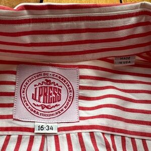 Vintage J. Press Shirt Mens 16 34 Red Pin Striped Button Down Made In USA Dress