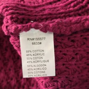 NWT Oversized S/M Miracle Women's V-Neck Cable Knit Sweater - Burgundy