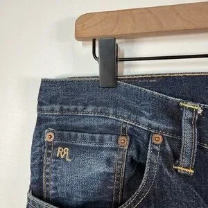 Five-pocket styling with authentic washers and rivets. Selvedge coin pocket. "RRL" embroidery at the coin pocket. Heavy twill pocket lining.