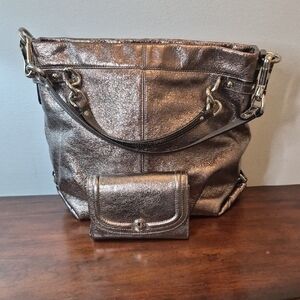 Coach Metallic Bronze Shoulder Bag with Wallet F17165