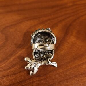 Heavy Enamel Silver and Blue Rhibestone Owl Ring