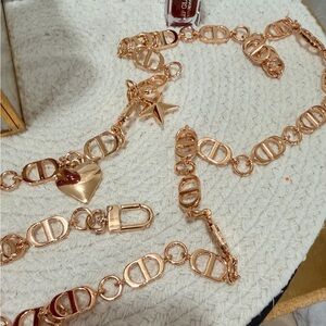 1. NEW (42 inch) CD logo gold chain with charms. 2. Red vegan leather (27 inch) strap with faux Pearl extender .