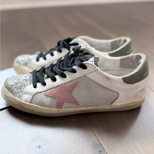 Golden Goose Super Star White Sneakers with Pink Star and Silver Glitter Toe 40