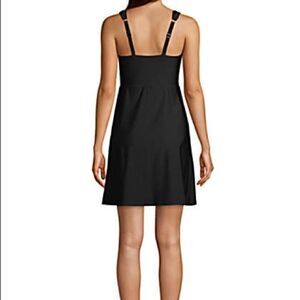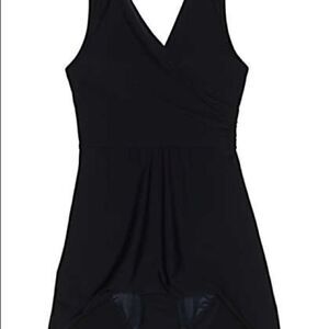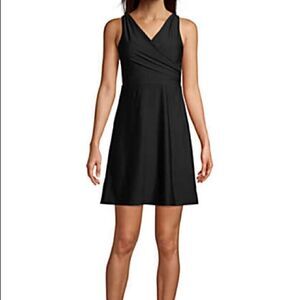 New Land’s End Plus Standard and Petite Tummy control technology swim dress Surplice wrap size black, adjustable straps and built-in swim bottoms