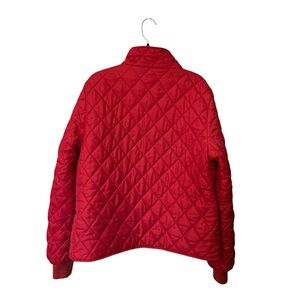 L.L. Bean women’s diamond quilted pattern thermal, “thermore”, jacket. Zip closure, with 2 front zip pockets, cotton elastic cuffs (bomber style), and mock neck style collar. Great for in between seasons, hiking, outdoors, or casual.