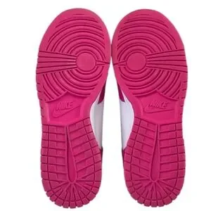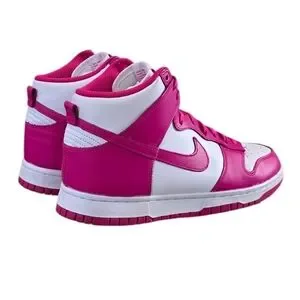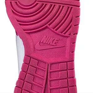The Nike women’s Dunk High ‘Pink Prime’ takes a clean and simple hoops silhouette and injects it with eye-popping color. The upper in white with overlays in vibrant hot pink features perforations on the toe box for ventilation and a comfy leather collar lined with mesh. Underfoot, the high-top rides on a traditional cupsole in white rubber with matching sidewalls atop a rubber outsole in pink.
