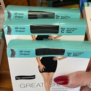 No Nonsense Great Shapes all-over shaper. Slims tummy and hips. 3 Black and 2 tan color. size C.I purchased them direct but they are not my size Great deal for you.
