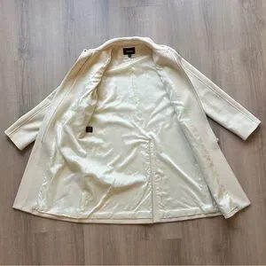 Design Details: Elegant fold-over collar, hidden front zipper, and deep welt side pockets.