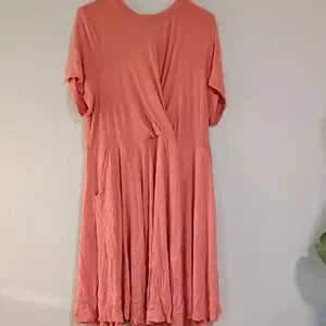 Stylish coral mini dress with twist front detail. Perfect for casual outings. small scuff near neckline shown in photos