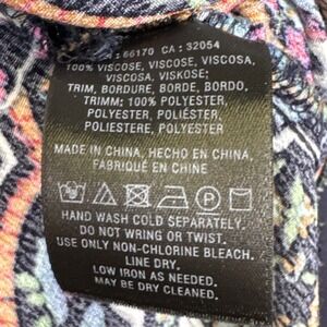 Anthropologie Maeve Maplewood midi dress in a vibrant multicolor boho paisley print. Long sleeves, lightweight woven fabric, relaxed silhouette, and a flowy handkerchief-style hem. Perfect for casual wear, brunch, or layering for transitional seasons.