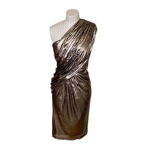 NWT Tadashi Shoji Bronze Sequin One Shoulder Cocktail Dress Size 6
