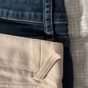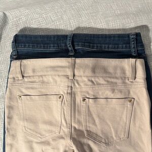 2 pairs of stylish pants, perfect for any occasion. Blue pair is GAP, denim, size 27 Short. Cream Pair is INC International Concepts, size 0 Petite.