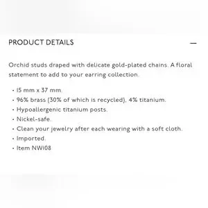 Orchid studs draped with delicate gold-plated chains. A floral statement to add to your earring collection.