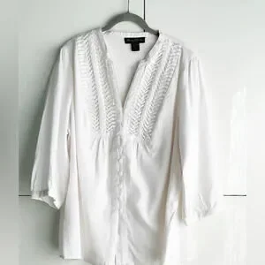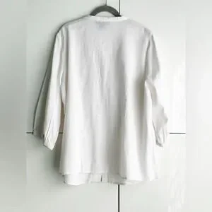 White Linen Blouse Pin Tuck Button Front 3/4 Sleeve Size 1X Marisa Christina