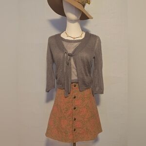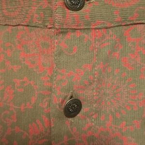 Fine Wale Corduroy Floral Print Button Front Mini Skirt M