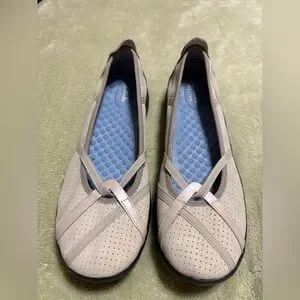 Clarks Privo Shoes Womens Size 10 Stone Leather Mary Jane Flats Perforated